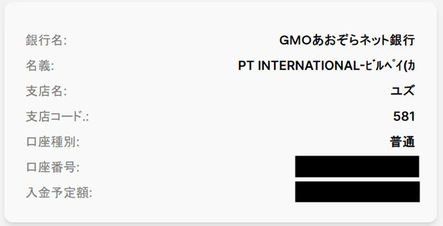 AXIORY側の振込先はpaypay銀行の口座になっています。
