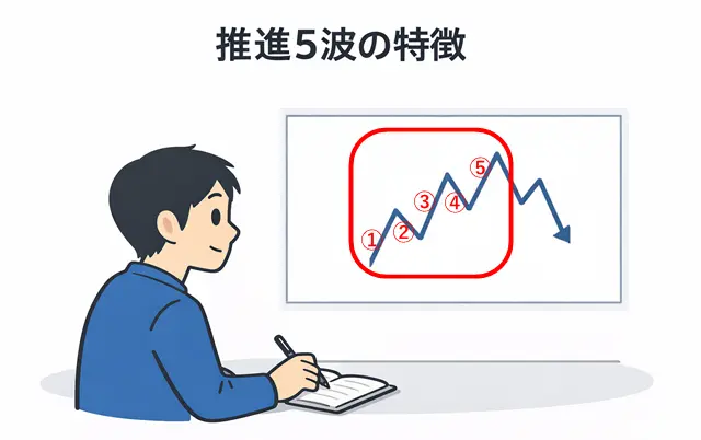 次は、この基本構造の中でも特に重要な「推進5波」の特徴について、1波から5波まで順番に見ていきましょう。